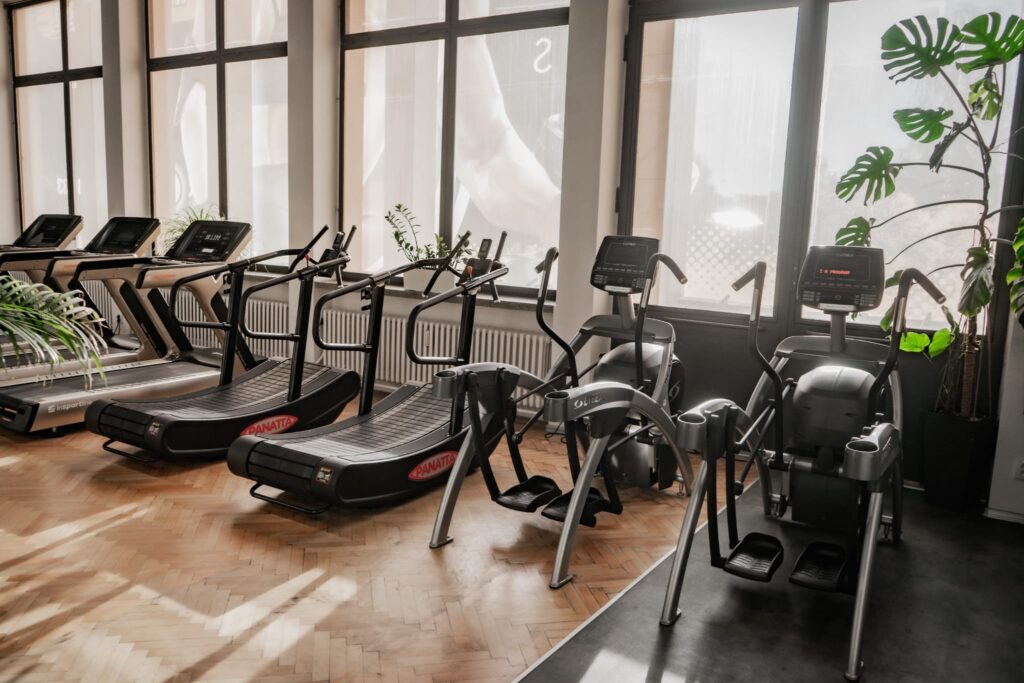 5x běžící pás, 2x Eco Racer, 2x crossový trenažér, 2x veslovací trenažér, 2x rotoped, 1x Nekonečné schody, 1x Air Bike